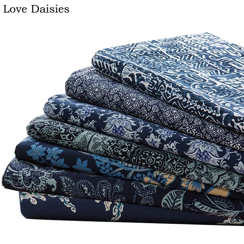Хлопок, лен, японский стиль, синий вентилятор, цветок, ткани для ручной работы, Одежда DIY, графический пэчворк, скатерть, подушки, Текстиль