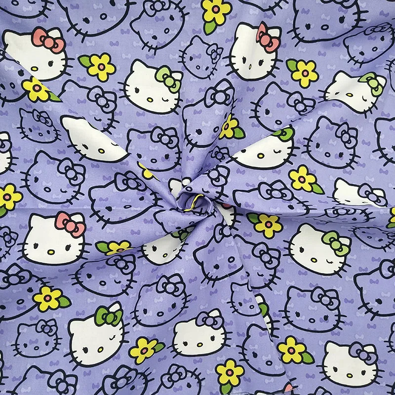 Прекрасный Фиолетовый Kitty Cat Ткань хлопковая голова кота лук ситец Ткань Вышивание лоскутное DIY детское платье широкий 140 см