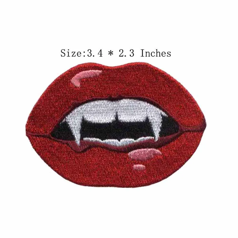 Красный рот патч 3.4 "Широкий Вышивка для hallows' день/красный рот/длинные зубы