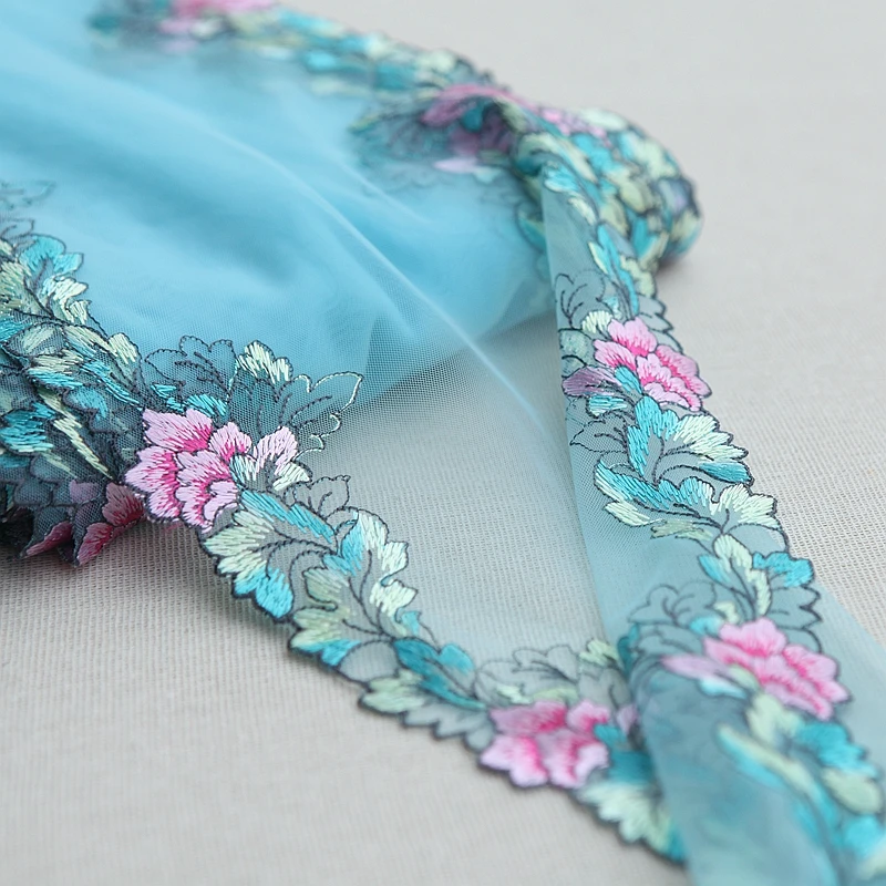 Новинка, 2 размера/партия, высокое качество, синяя кружевная отделка, вышивка, кружевная ткань, сетка, кружевная лента, тюль, гипюр, шнур, кружева, шитье, сделай сам, кукольная ткань