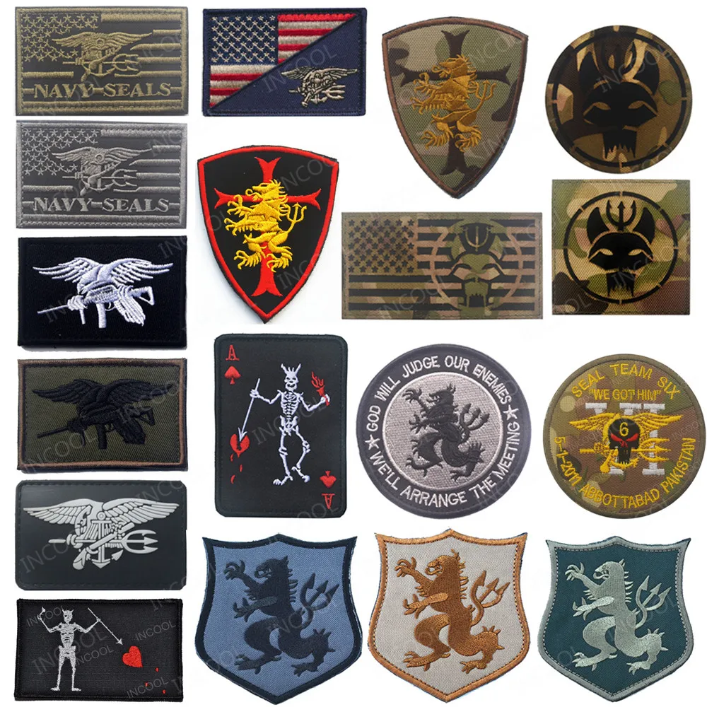Американский флаг США темно-синяя печать вышитые нашивки ИК инфракрасный светоотражающий Morale нашивка Тактическая Военная повязка вышивка значки