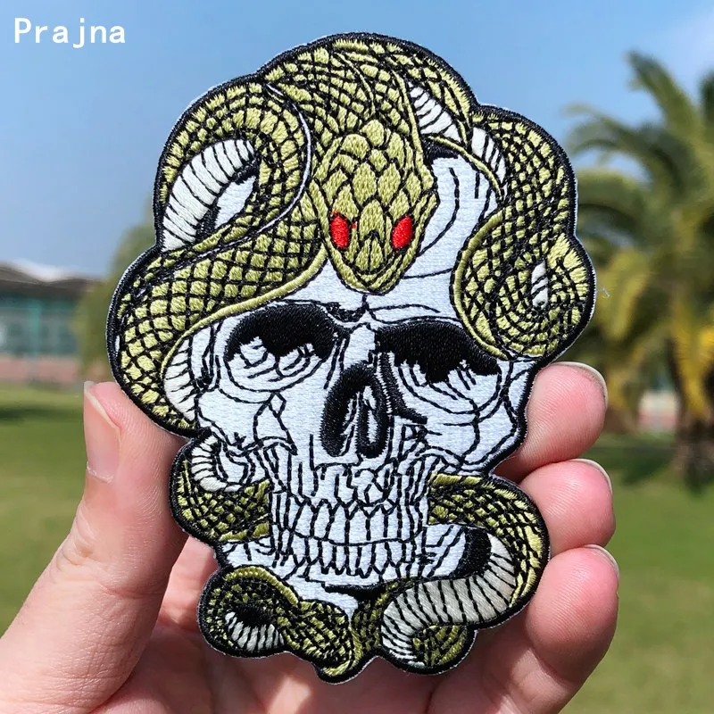 Нашивка в виде черепа Prajna «Змея», вышитые нашивки для одежды, железные нашивки на одежде, аппликация в стиле панк, нашивки на мотоциклетной куртке