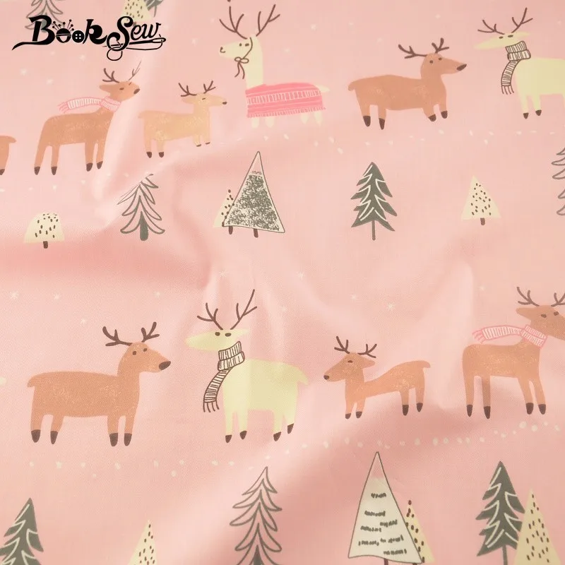 Книжный розовый швейный материал DIY Лоскутная текстильная саржа Скрапбукинг Рождественская елка и животные Tela Algodon 100% хлопок ткань