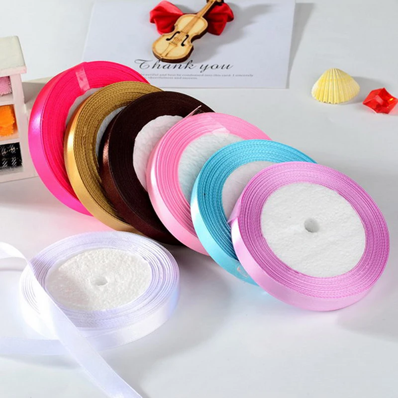 Шелковая атласная лента 6 мм для вечеринки, дома, свадьбы, украшения, подарочная упаковка, Рождество, Новый Год, сделай сам, материал 25 ярдов, длина 22 м