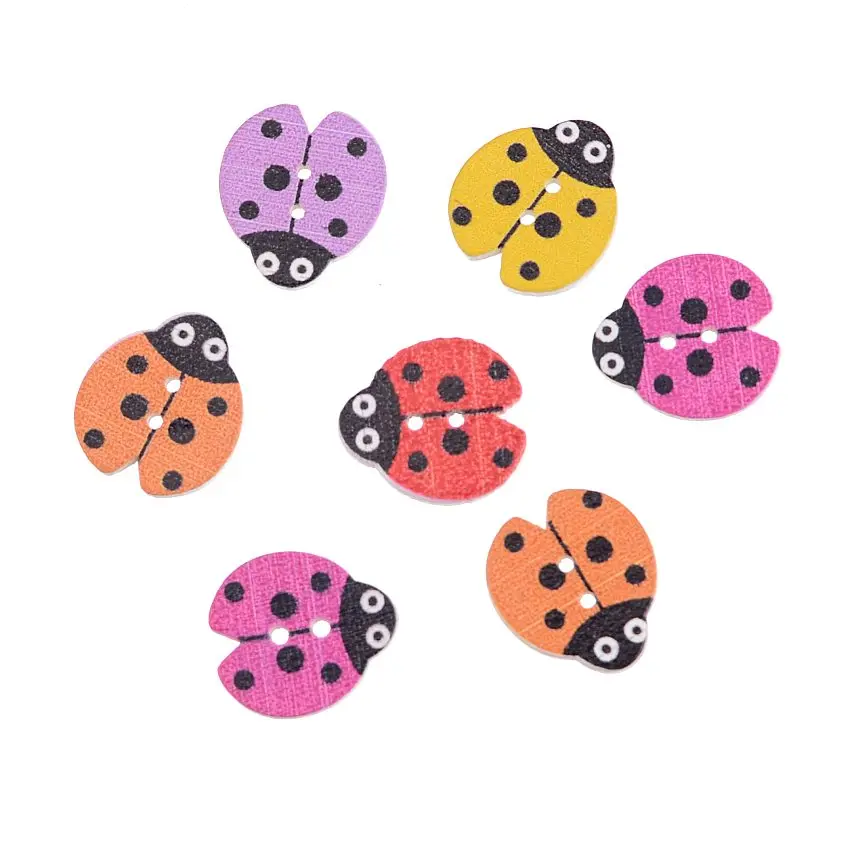 Бесплатная доставка Розничная продажа 10 шт случайный, смешанный, милый мультфильм божья коровка 2 отверстия многоцветные деревянные швейны...