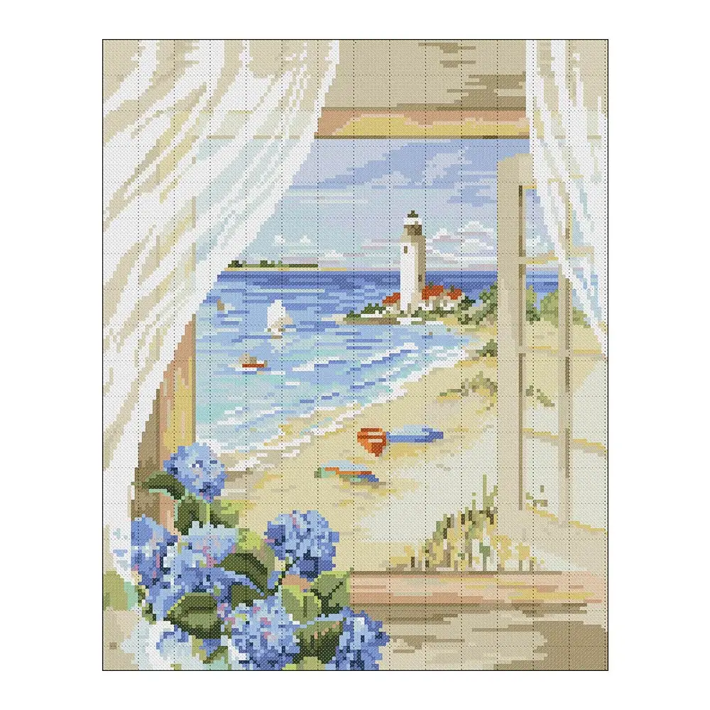 Окно Алмазная вышивка крестиком Полный Круглый Новый DIY 5D Домашний Декоративный Цветочный Пляж мозаика вышивка