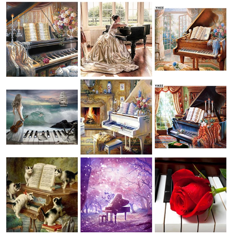Diy живопись, 5d алмазная вышивка, вышивка крестом, полный квадрат, пианино, алмазная живопись море