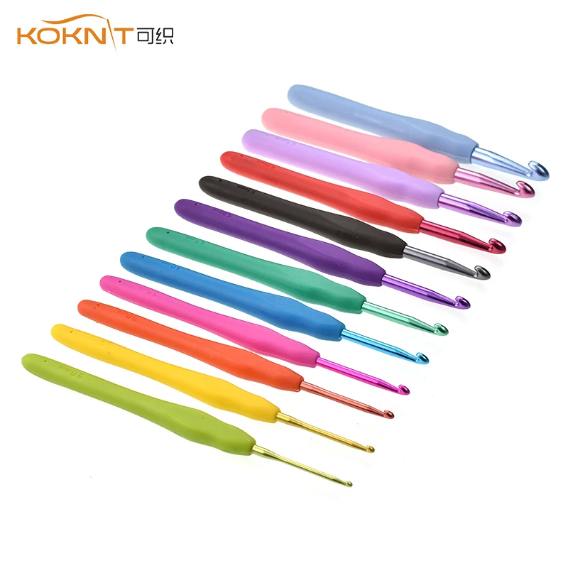 Разноцветные крючком Крючки KOKNIT, 12 шт., эргономичные Мягкие вязаные иголки-Крючки с мягкой ручкой, смешанный размер 2,0-8,0 мм, инструмент для плетения своими руками, набор с чехлом