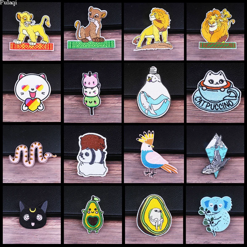 Pulaqi король лев патч Likee кошка патчи вышитые утюжок на патчи для одежды мультфильм животное стикер полосы для одежды DIY