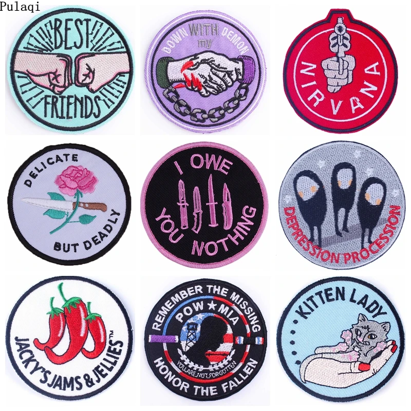 Pulaqi Хиппи Патч круглые в полоску утюжок на вышитые патчи для одежды наклейка на одежду аппликация моющийся пользовательский значок сделай сам
