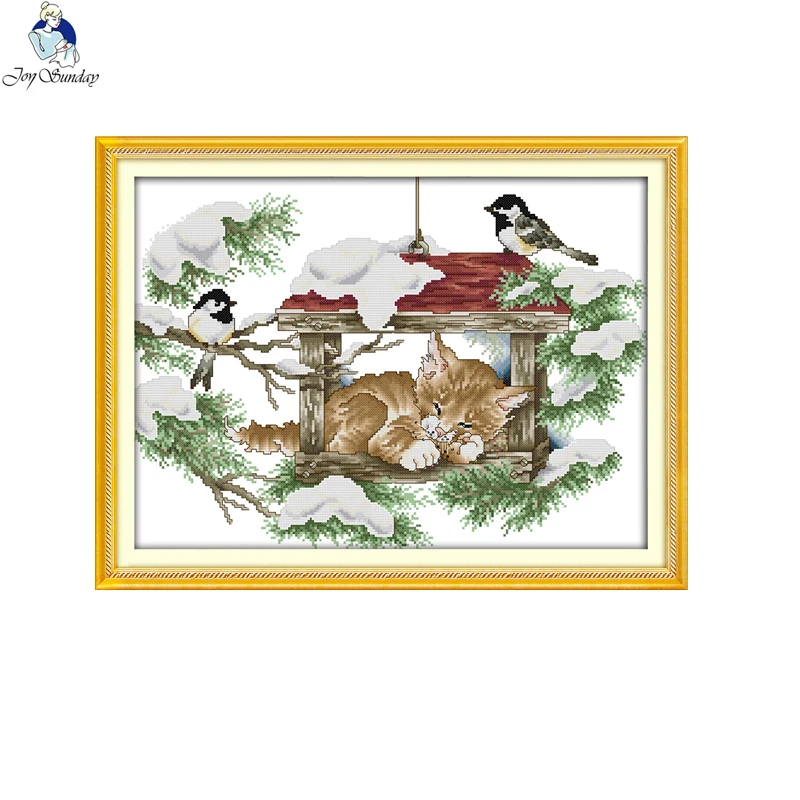 Радость воскресенье глубокого сна Cat и птицы узор вышивки крестом Наборы 11CT набивные ткани 14CT холст DMC рассчитывал Китайская вышивка компле...