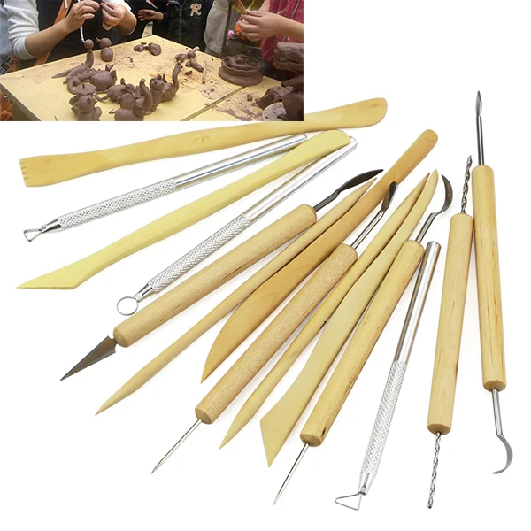 14 шт. художественных промыслов глины скульптуры Набор инструментов деревянный из металла формовка гончарной глины Скульптура скульптуры и...