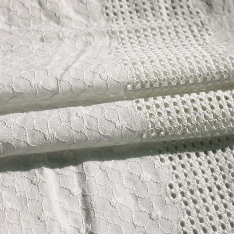 1y * 140 см натуральный белый Чистый хлопок кружево Вышивка Ткань Цветочный выдалбливают