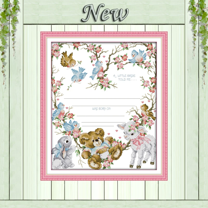 Свидетельство о рождении медведь Птицы мультфильм живопись Счетный Печать на холсте DMC 11ct 14ct вышивки крестом рукоделие Наборы для вышивани...
