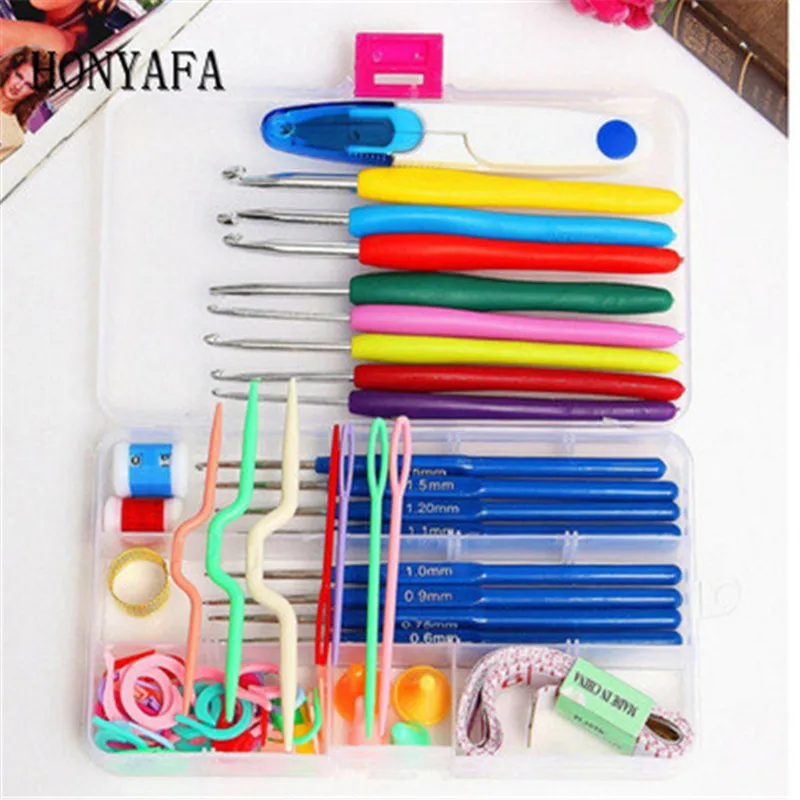 16 размеры крючки Иглы стежки Вязание Спицы Ремесло Дело крючком набор пряжи крюк для швейных инструменты