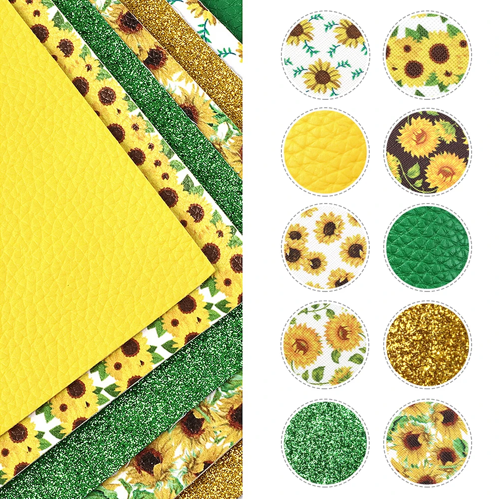 David аксессуары, 10 шт./компл., 20*34 см, набор из синтетической кожи с принтом подсолнуха, сделай сам, бант, шитье, искусственная кожа, тканевые листы, 1Yc10005