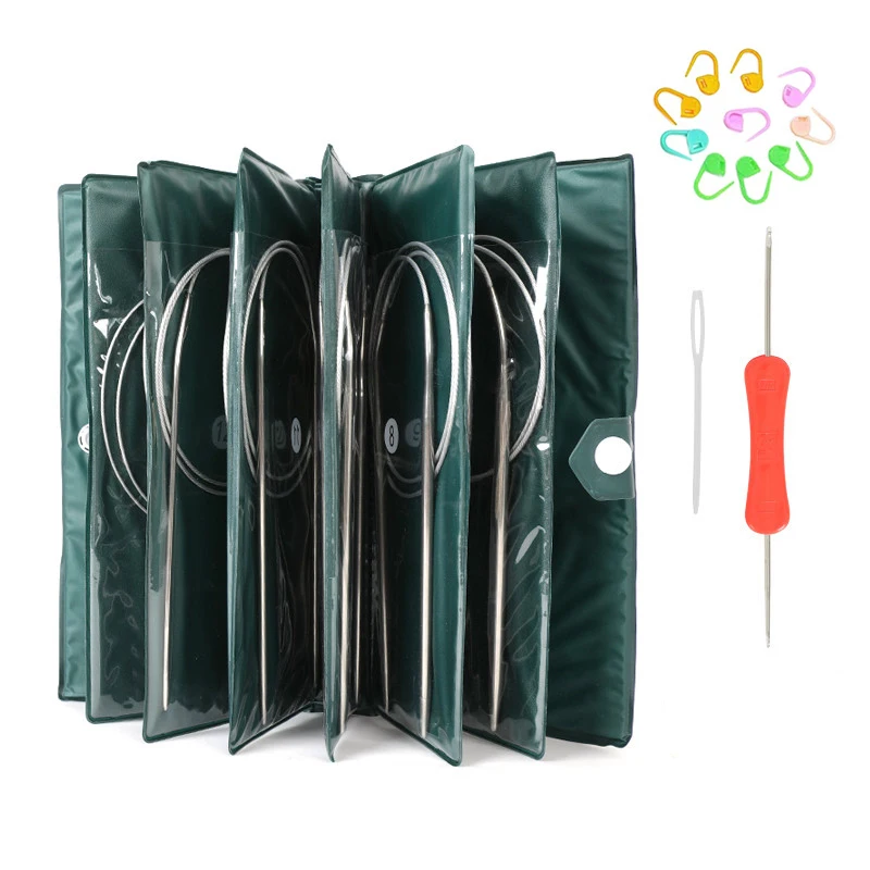 11 шт. Набор круглых вязальных игл из нержавеющей стали, Набор вязаных крючком, инструменты для рукоделия с сумкой, набор швейных игл 43/65/80/100/120 см
