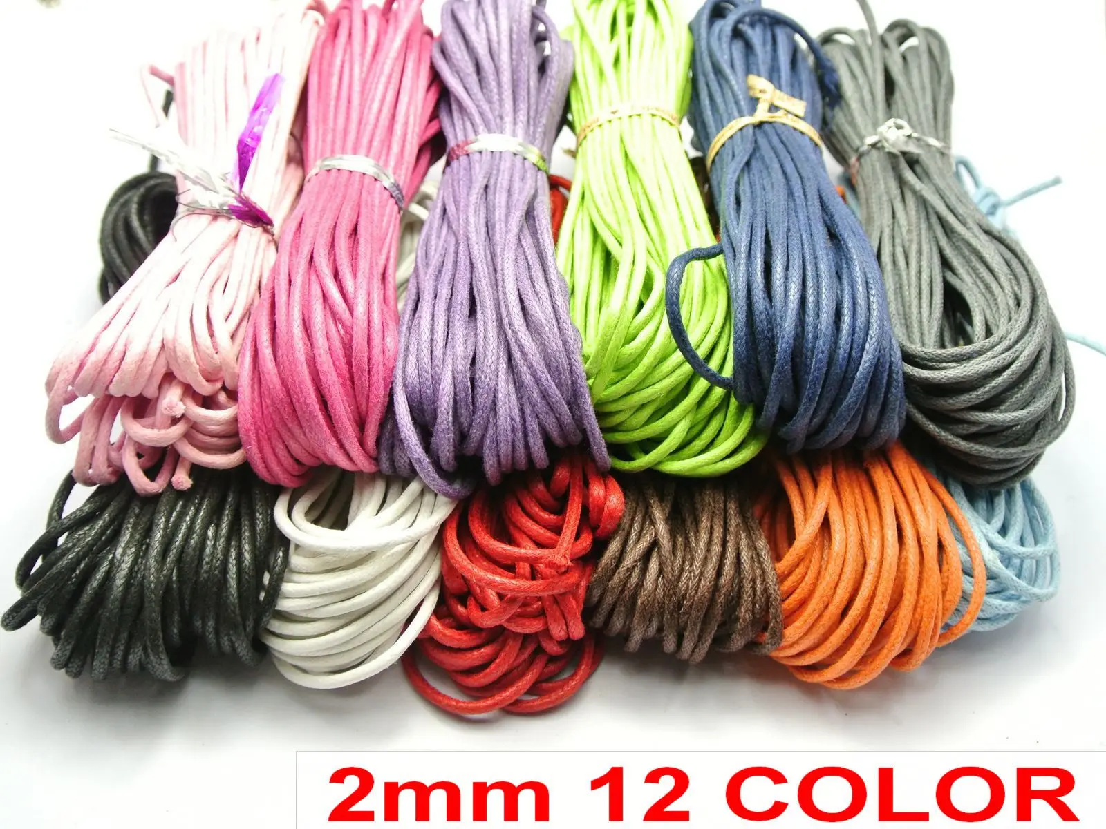 120 м Смешанные Цвет из вощеного хлопка Бисер шнур 2 мм Ювелирные изделия String 12 Цвет