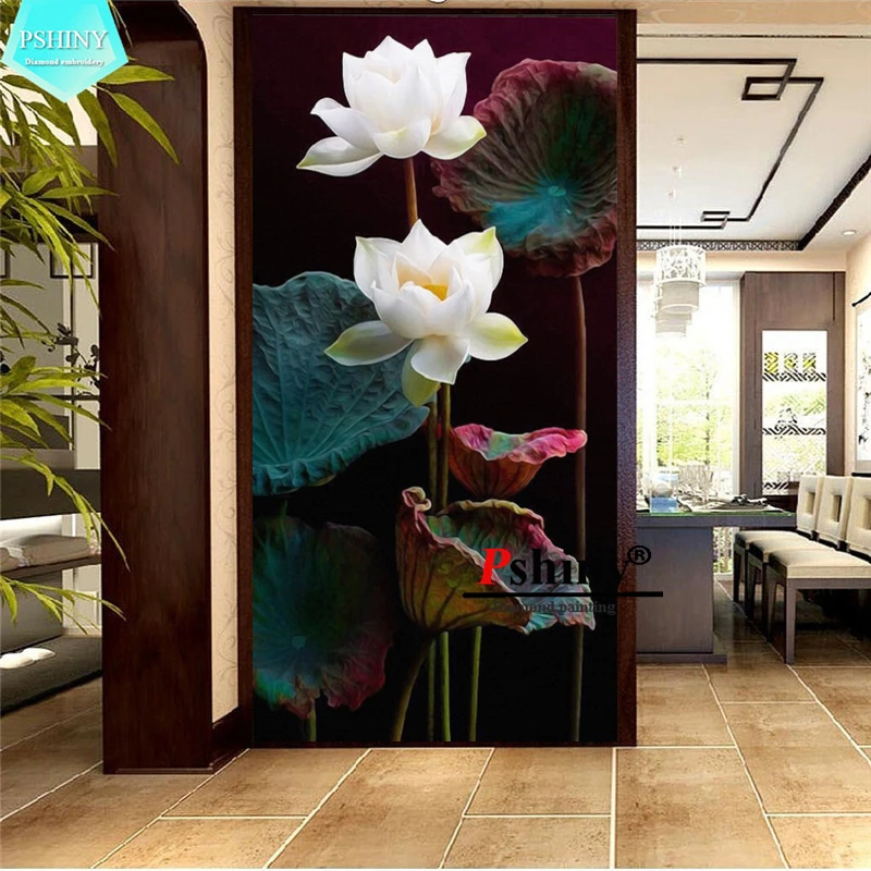PSHINY 5D алмазная вышивка своими руками, продажа белых цветов лотоса, полное сверление, квадратные стразы, фотографии, алмазная живопись, новое поступление