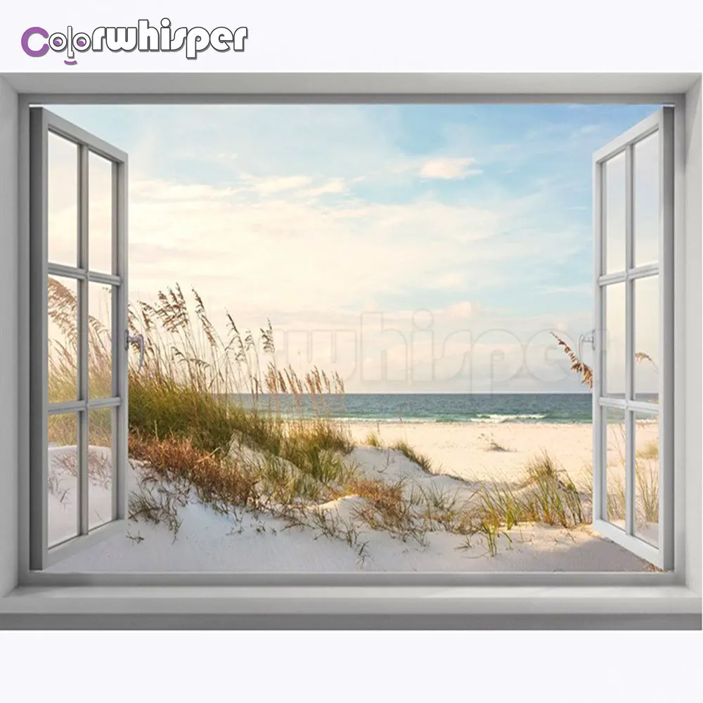 Алмазная Вышивка Полный 5D квадратный/круглый дрель Приморский Пейзаж изображения окна бриллиантом кристаллом вышивки крестом мозаика 812DP