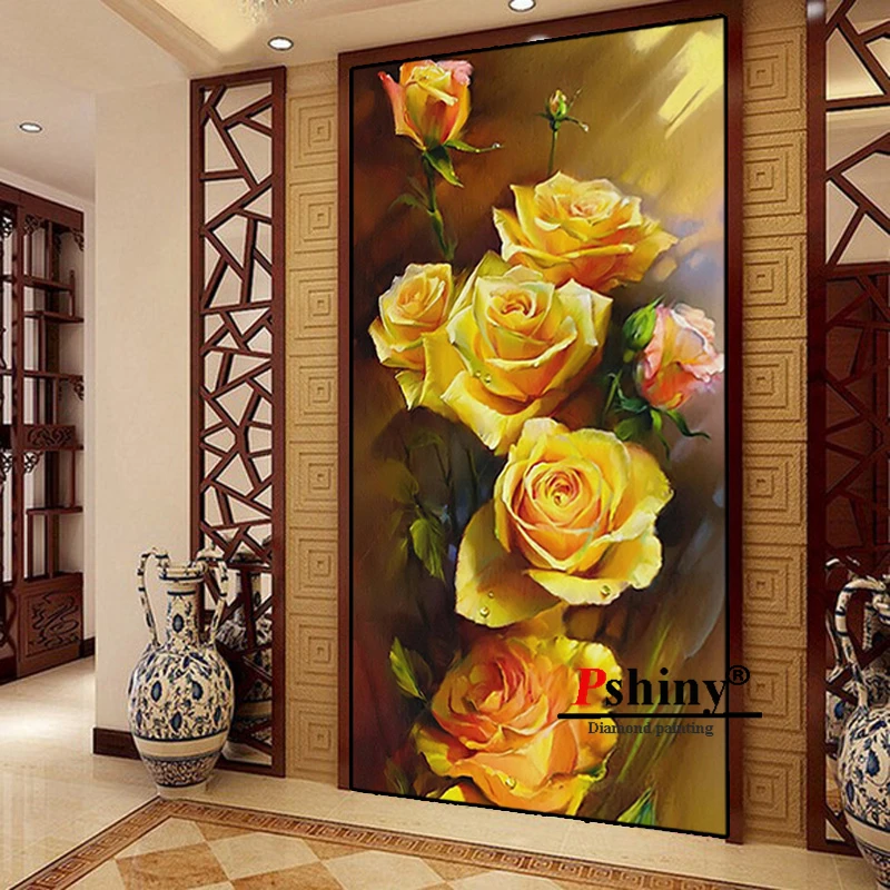 Алмазная вышивка PSHINY 5D DIY, распродажа, желтые розы, цветы, квадратные стразы, картины, алмазная живопись, новое поступление
