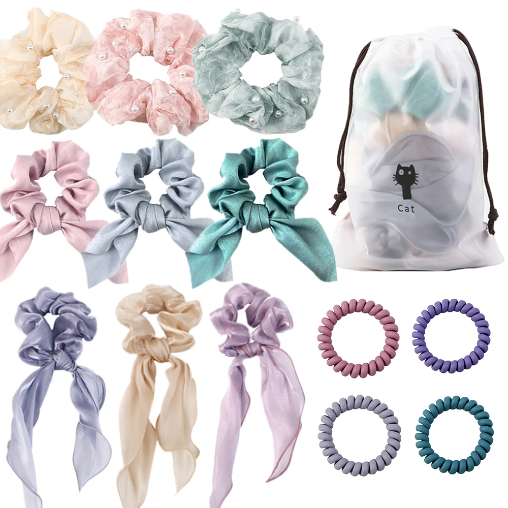 Давид Аксессуары 13 шт. Набор для волос милый простой цвет девушка голова Веревка бант головные уборы резинка для волос кольцо для волос с сумкой, 1Yc9628