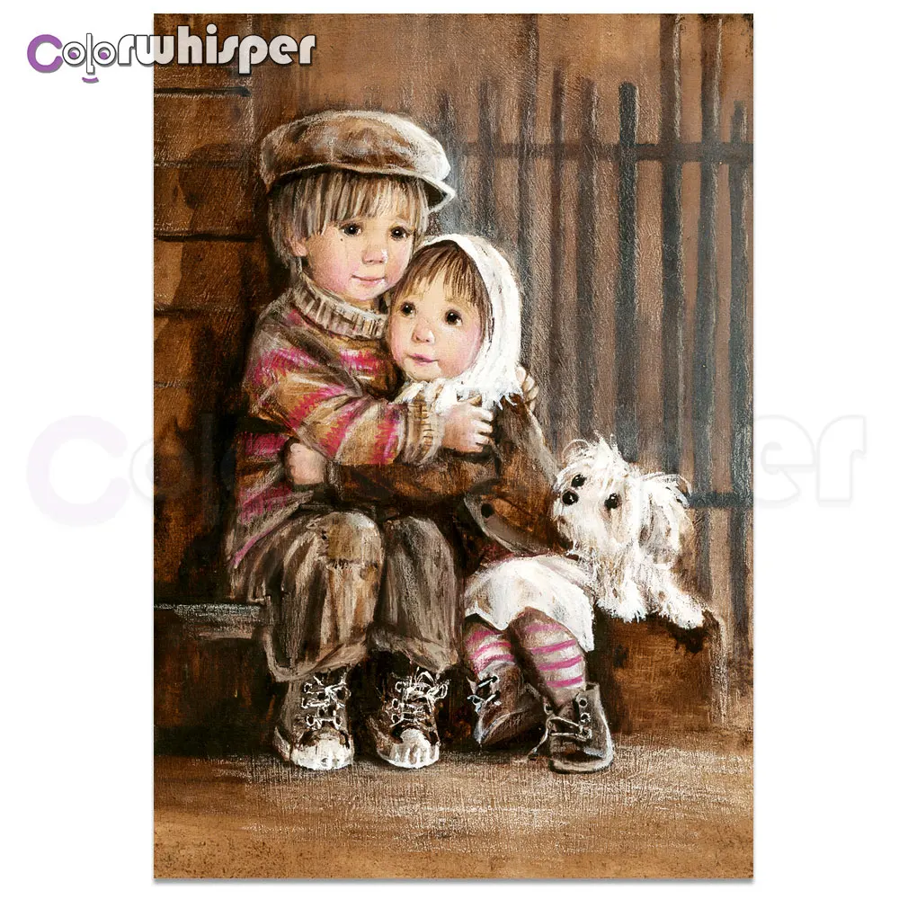 Diamond картина Полная площадь/круглый дети брат и сестра горный хрусталь Алмазная вышивка вышивки крестом кристалл Z073