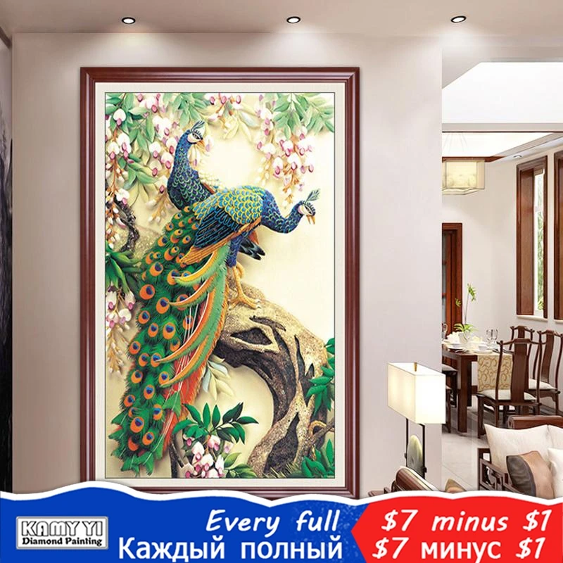 KAMY YI полный квадратный/круглый дрель алмазная живопись 5D «сделай сам» "Павлин" Вышивка крестом мозаика домашний Декор подарок HYY