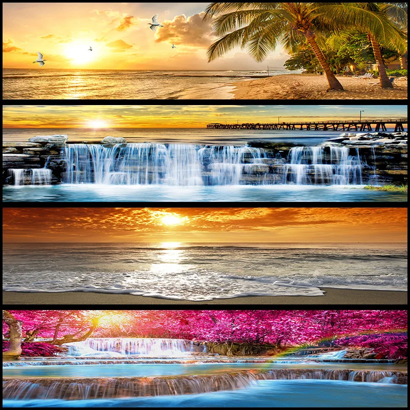 DIY 5D картина из бисера, пейзаж морская волна крестом мозаика картины для выкладывания камнями Полный Круглый горный хрусталь Home decor
