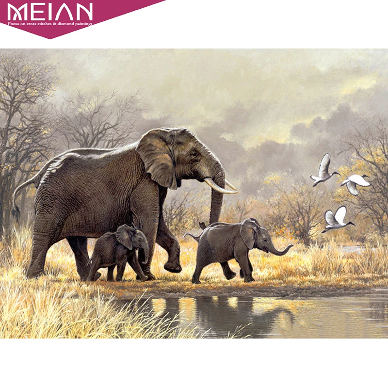 5D DIY Алмазная вышивка, мозаика, домашнее украшение, животное, слон, семья, алмазная живопись, вышивка крестом, горный хрусталь