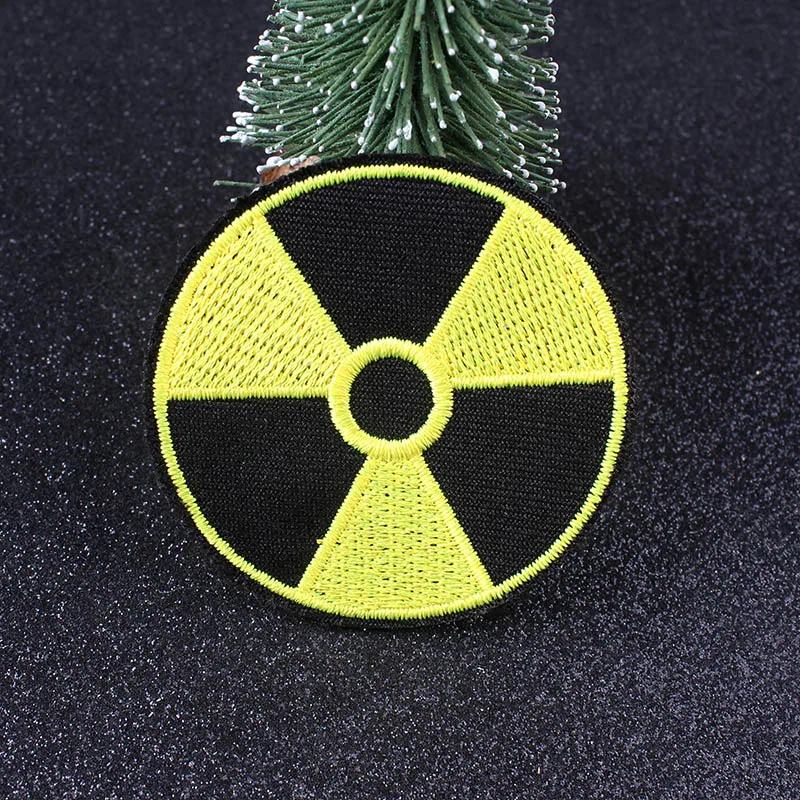 Чернобыльский ядерный опасный знак радиоактивный патч Вышивка швейная желто-зеленая железная нашивка для одежды аппликация DIY ткань