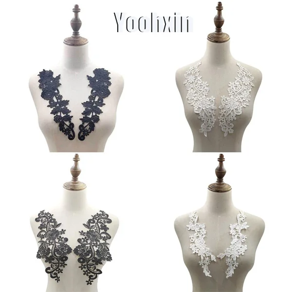 1 пара модных белых и черных хлопковых кружевных лент с цветочной вышивкой для самостоятельного шитья, воротник с аппликацией, декор из гипюра