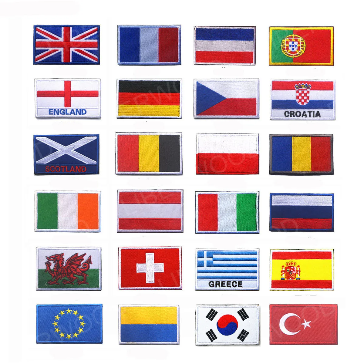 Нашивка С Вышивкой Англия Великобритания, Италия ЕС, Испания эмблема значок Франция Россия, Германия Корея Япония Швейцария аппликация нар...