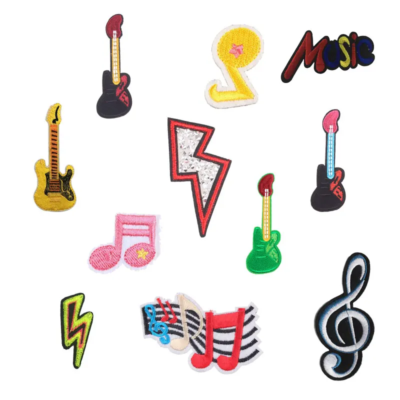 Пластырь для нот на музыкальной гитаре, наклейка, Железная на одежду, теплопередача, аппликация, сделай сам, вышитая аппликация, ткань, блестки, пластырь H