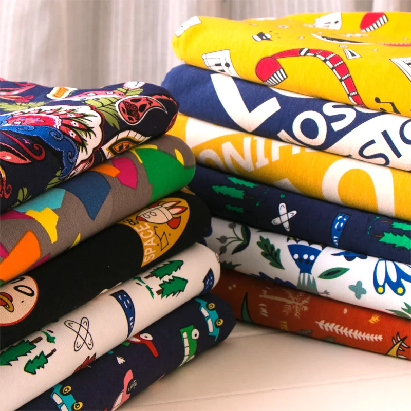Трикотажный свитер из махровой ткани с рисунком из мультфильма, Ширина 170 см, пижама, детская одежда, материал