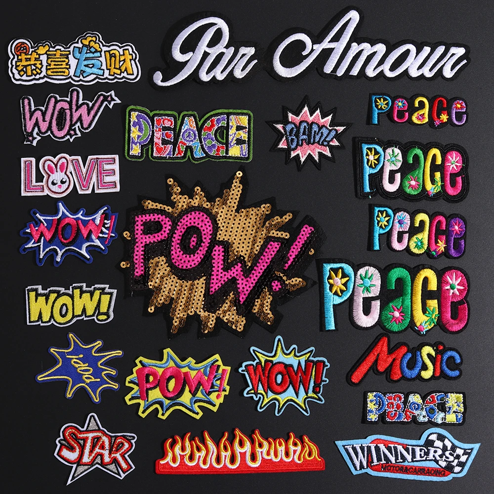 Peace Wow Pow письмо термонаклейки цвета музыка любовь звезда слова аппликации для одежды пальто наклейки 3D Diy Одежда Декор
