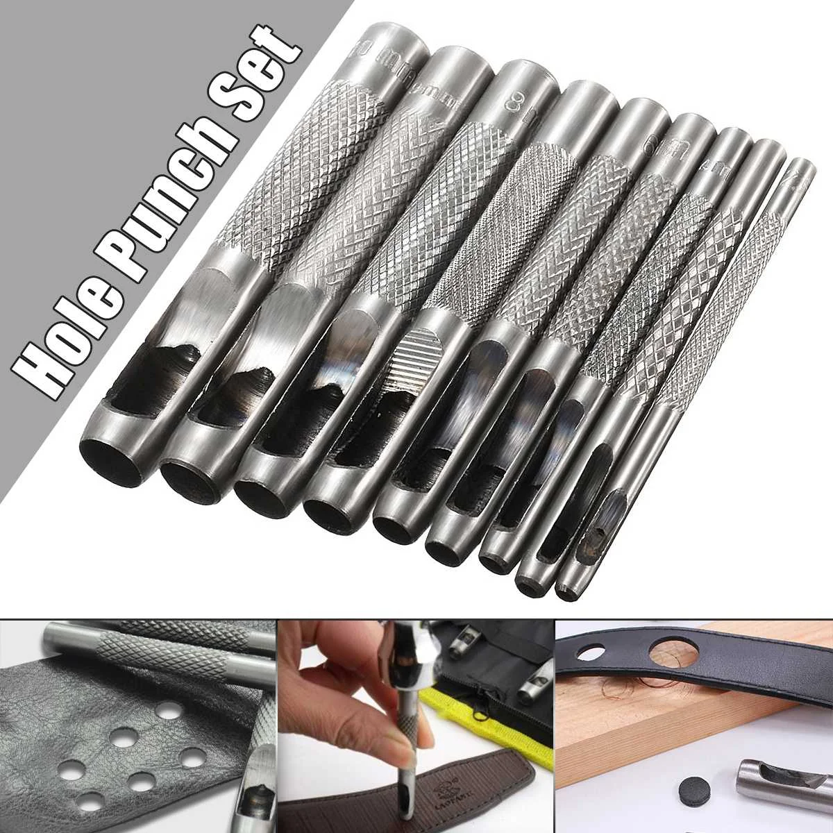 Новинка, 9 шт., металлический Дырокол, металлический кожаный перфоратор, режущий инструмент для рукоделия, дырокол, дырокол, профессиональный инструмент для самостоятельной сборки, 2 мм-10 мм