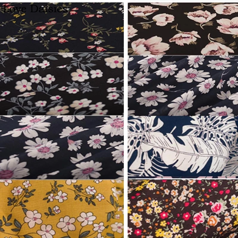 100%, искусственный шелк, с принтом, черный, темно-синий, красный цветок, ткань, тонкая, мягкая, для DIY, для женщин, мужчин, летняя, домашняя одежд...