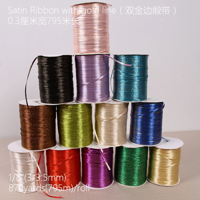Однотонная атласная лента 3 мм 1/8 дюйма, с золотыми краями, для свадебного украшения, конфетных тортов, упаковка, аксессуары, материал для скрапбукинга, 20 ярдов в партии