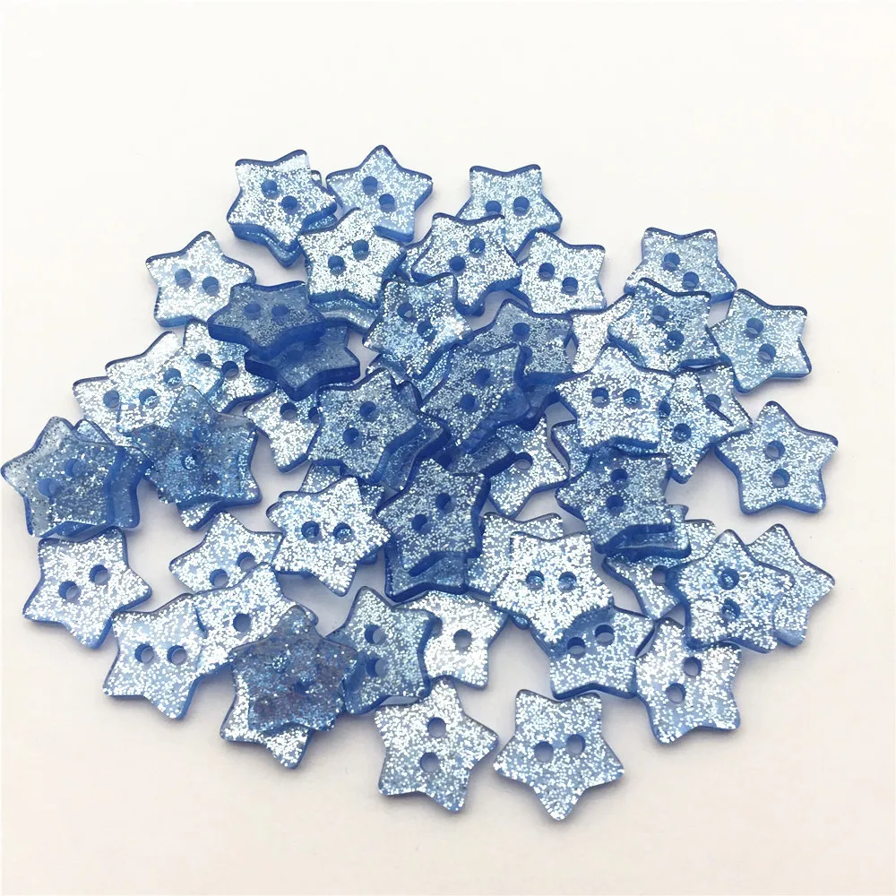 Блестящая Смола шт. синий 300 звезда пуговицы 14 мм блеск Вышивание 2 отверстия Рождество ремесла украшения Детские пуговицы