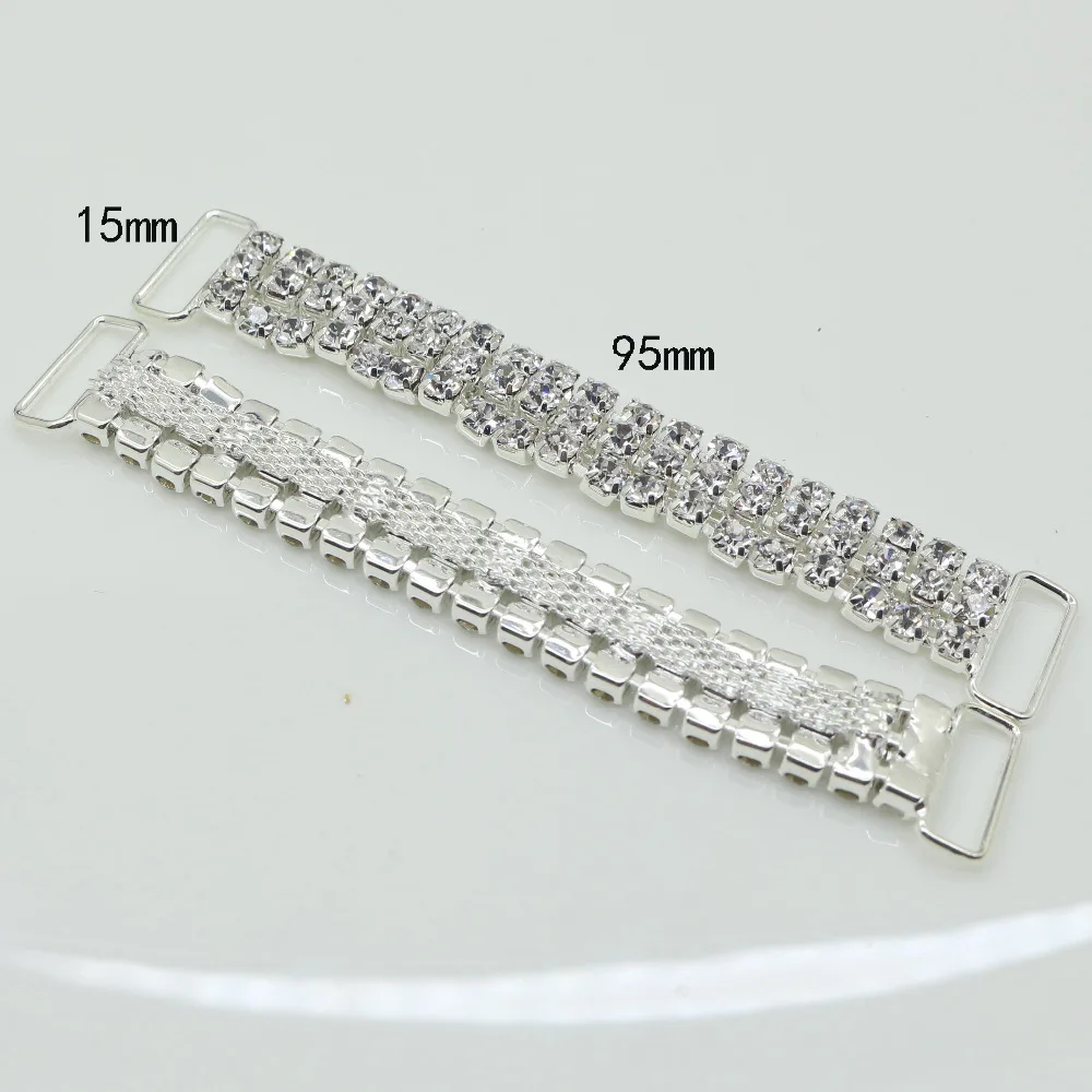 NEW10pc 3 ряда 95 мм Шарм цепи разъемы для бикини/пряжки укрепление плоские цепи из металла и стразов Пряжка для бикини