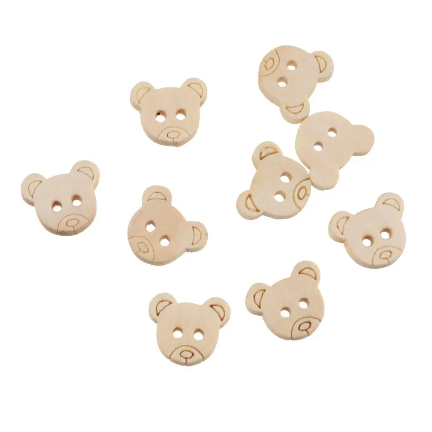 Бесплатная доставка Розничная продажа 20 шт. талисманы в виде плюшевого мишки 2 отверстия деревянные пуговицы для шитья детей 13x11 мм