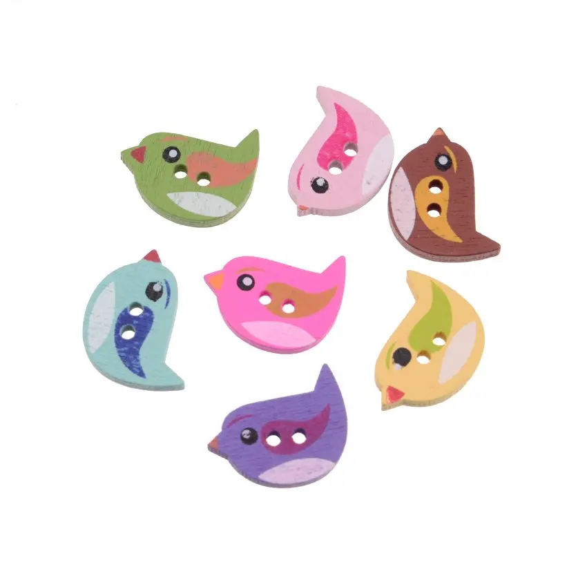 Бесплатная доставка, розничная продажа, 10 шт, разные деревянные пуговицы для шитья, 2 отверстия, рисунок птицы, скрапбукинг, 22 мм x 17,5 мм, F0240