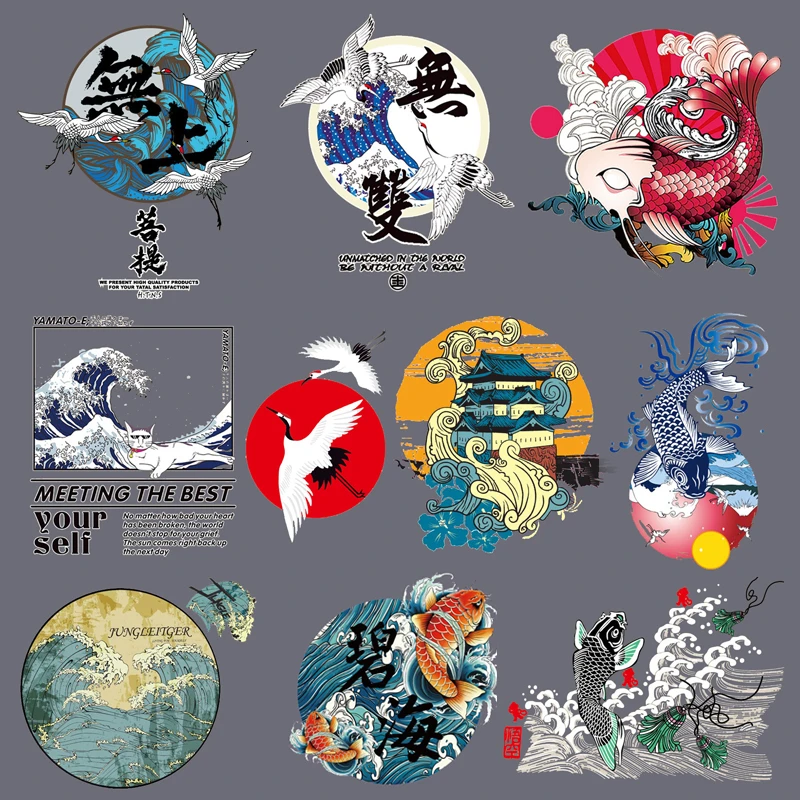 Красно-коронованный журавль Цветок Рыба железо на моющиеся аппликации А-уровня патчи теплопередача для DIY футболки аксессуары мешок одежды