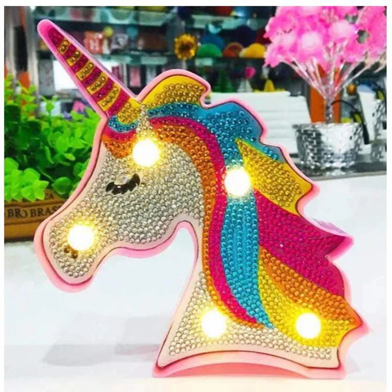 YI яркий новый 5D DIY Алмазная картина светодиодный светильник мультфильм Единорог мозаика вышивка незавершенный набор Рождественский подаро...