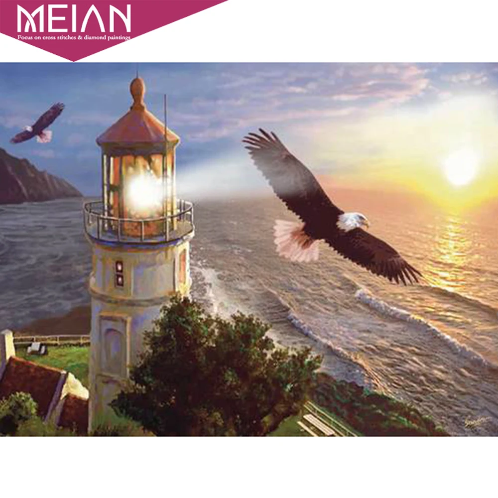 Алмазная картина Meian 5D DIY с изображением орла, животных, алмазная вышивка, 3D вышивка крестиком, рукоделие, Алмазная мозаика, украшение для дома