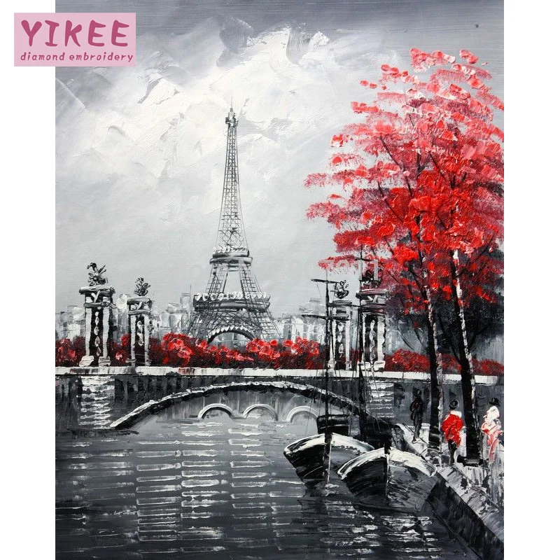 YIKEE Алмазная картина полностью квадратная, Париж, diy Алмазная мозаика, 5d diy, алмазная вышивка пейзаж