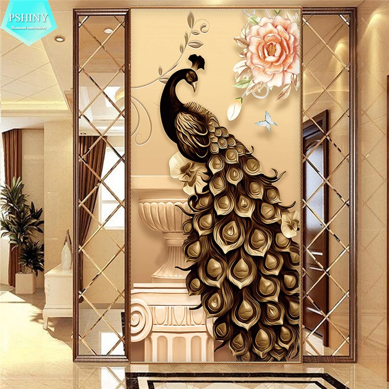 PSHINY 5D DIY алмаз вышивка распродажа Черное золото Павлин Полный квадратный горный хрусталь мозаика комплект мозаичная картина с изображением...