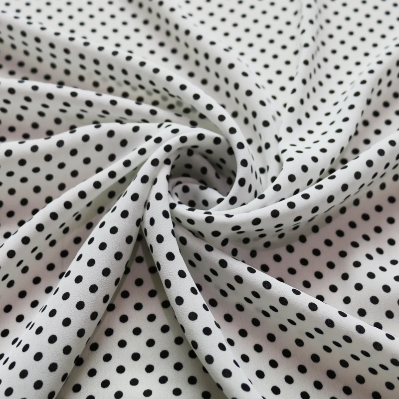 Черный белый горошек Ткань шифон креп текстиль для рубашек