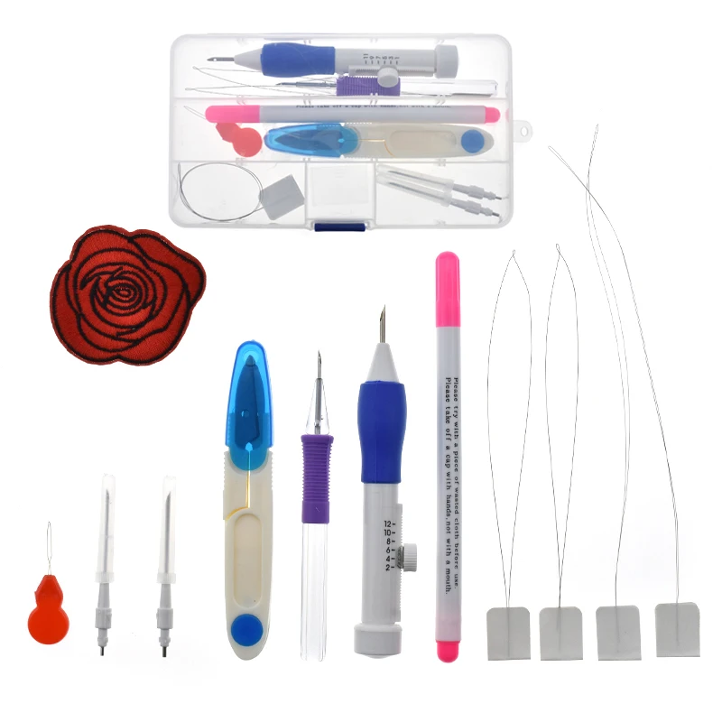 DIY Инструменты Волшебная вышивка прошитая перфорированная ручка с иглой набор иголок Ножницы Вышивка узоры швейные инструменты набор с чехлом